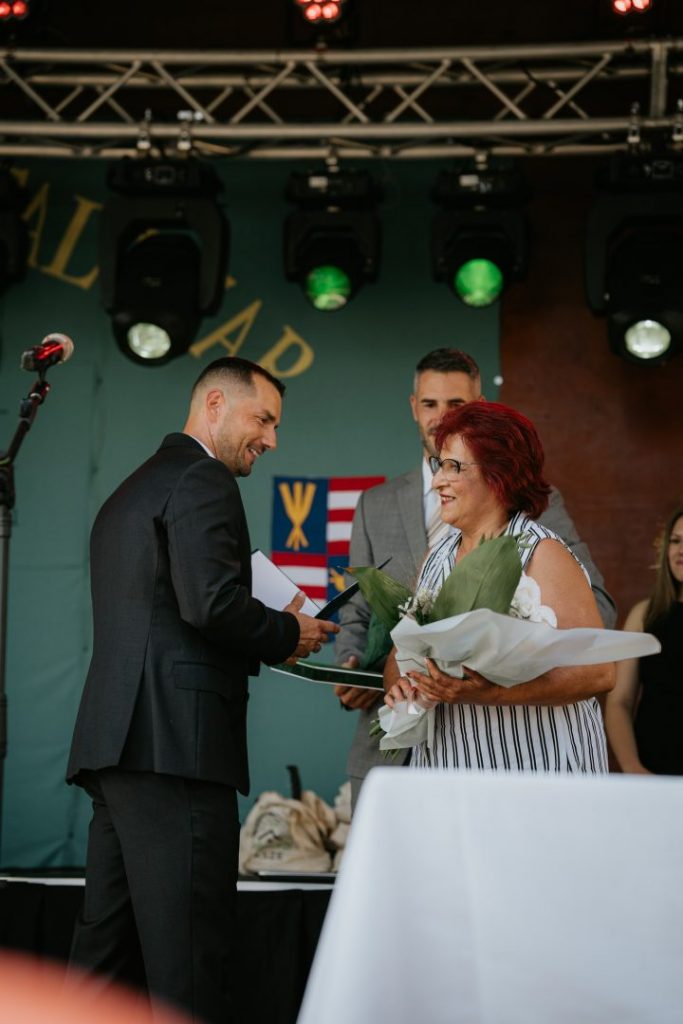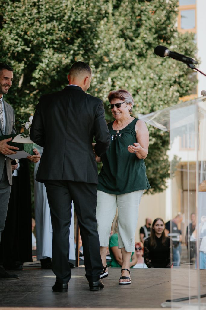 Molnár Tibor polgármester úr ünnepi beszédét követően került sor az elismerő díjak átadására. Iváncsa Községi Önkormányzata minden évben elismeri azok munkáját, akik több évtizede kimagasló pedagógiai vagy közösségi tevékenységükkel hozzájárulnak településünk fejlődéséhez. Ennek elismeréseként, a Falunapon most is három díjazottat köszöntöttünk. Idén a Dr. Fejérpataky László Általános Iskolában negyven éve tanító dr. Farkas László, a Nyugdíjasok Iváncsai Szervezetének tagja, Rozbora Gézáné, és az Iváncsai Nagycsaládosok Egyesületének tagja, Lepsényi Sándorné vehette át a kitüntetést.